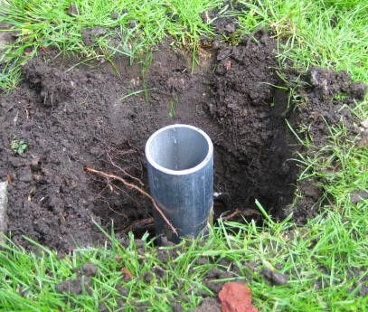 The sleeve can be inserted directly into the ground, or into a concrete footing for extra strength. The sail pole simply drops into the sleeve and lifts out.
