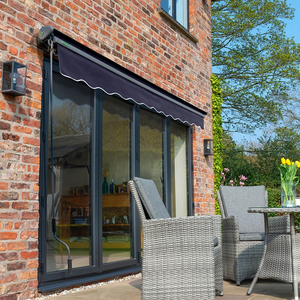 3.5m Half Cassette Electric Plain Dark Blue Awning (Charcoal Cassette)