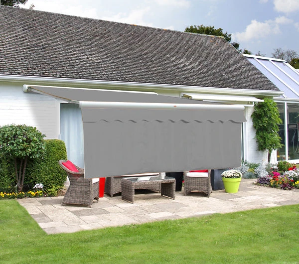 Velcro fastening makes it quick and easy to roll it away and out of sight behind the incorporated scalloped valance. Keep your awning looking neat and stylish all the time without the extra hassle of having to install a detachable valance whenever you need shade.