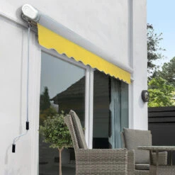 3.5M Deluxe Wireless Full Cassette Electric Awning With Lights (Charcoal Cassette) | Pin Stripe Grey