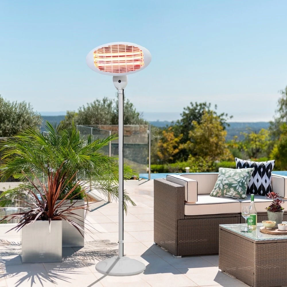 2kW IPX4 Freestanding Electric Quartz Bulb Patio Heater in White – 3 Power Settings by Heatlab®